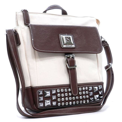 Cross-body Pockets Messenger Bag beige brown rhinestone Studs designer inspired