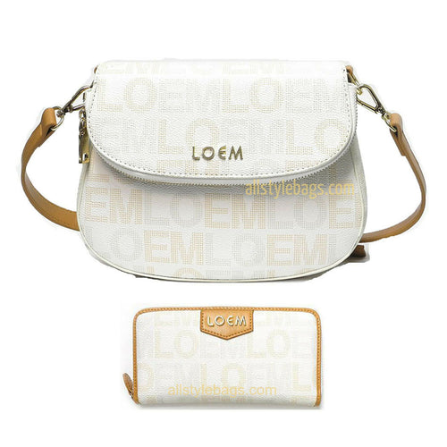 LOEM white crossbody shoulder wallet Bag set messenger handbag signature flap