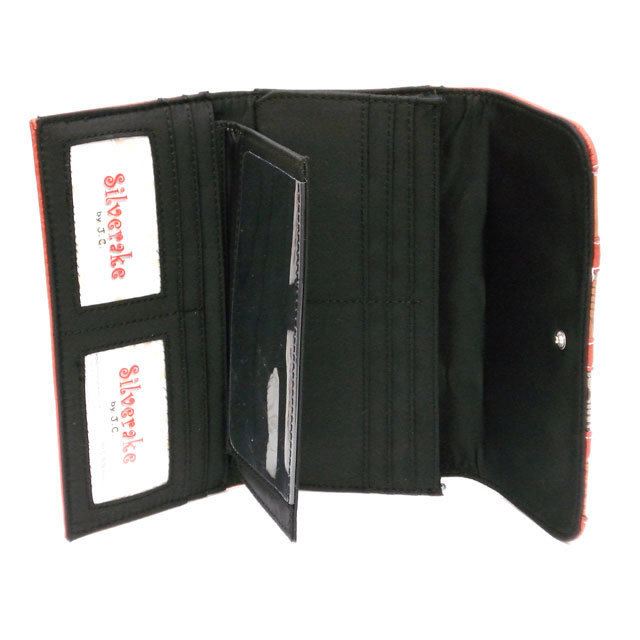 Esta es una billetera de mujer con múltiples funciones con diseño de Silverake en relieve y parches de tiras de cachorros inspirada en un diseñador de calidad; 2 botones cerrados; Interior adjunto con un porta chequera individual; En el medio de la billetera principal se pueden colocar 6 tarjetas de crédito, debajo de ella, hay un bolsillo cerrado con cremallera en el medio dividido para ser 2 bolsillos de capas, en el lado derecho de la billetera hay 2 bolsillos con ventana y 2 bolsillos deslizantes, debajo de él, hay 2 bolsillos deslizantes abiertos que insertan un porta chequera desmontable, en la parte posterior de la billetera, hay un bolsillo cerrado con cremallera para monedas