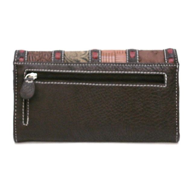 Cartera de mujer en talla L con diseño inspirado en Silverake, con diseño de talonario de cheques con diseño de rayas en relieve y parches
