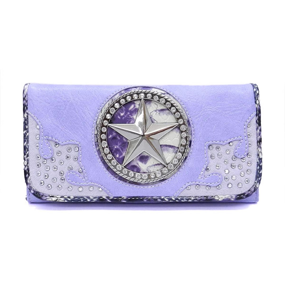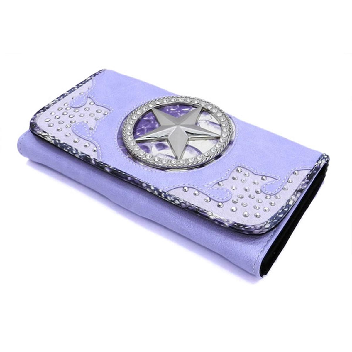 Cartera tipo chequera Fleur De Lis lavanda en forma de L con diamantes de imitación inspirados en el diseñador