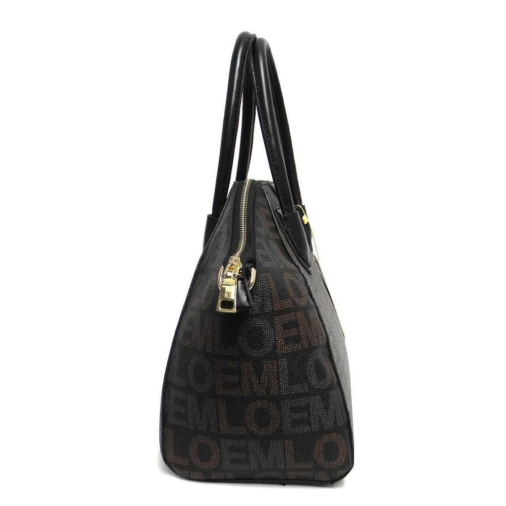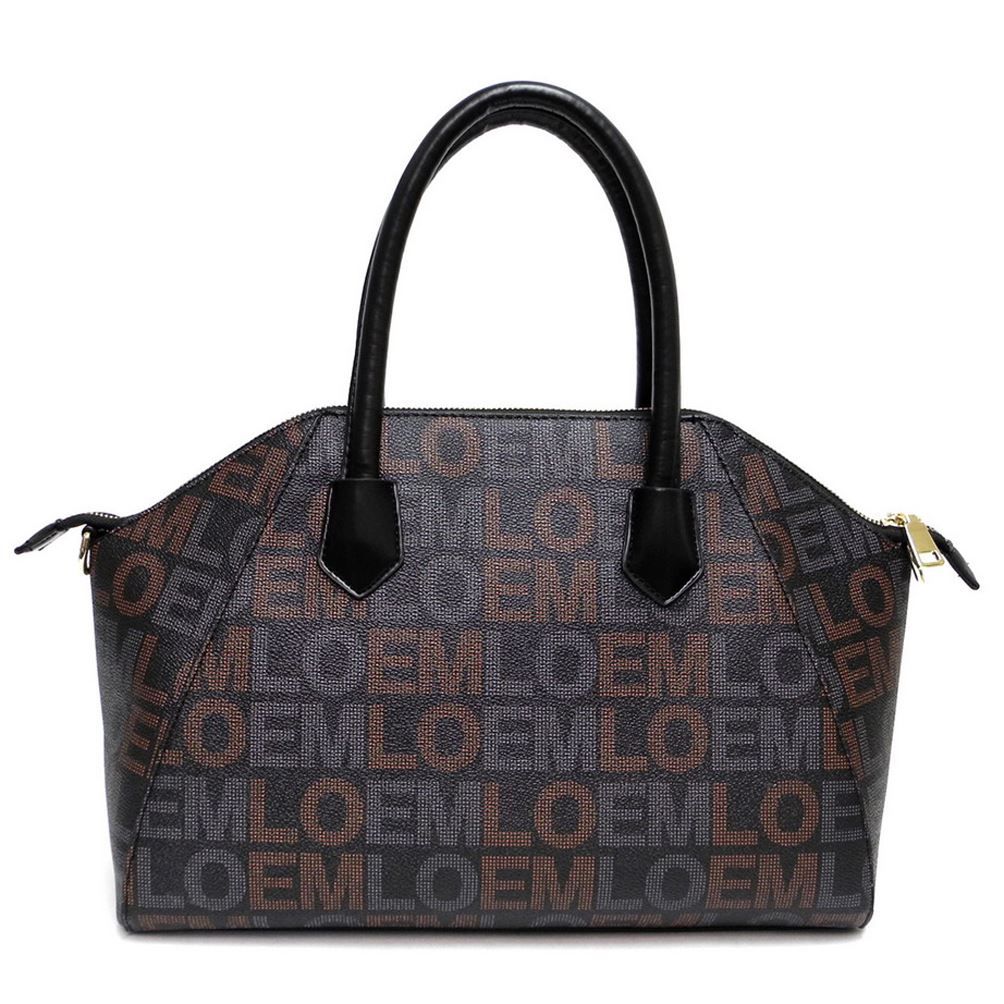 Bolso de mano con diseño de LOEM con licencia y firma inspirada. Estampado de logotipo en metal dorado y cierre de cremallera en la parte superior. Bolso de mano para fiesta.