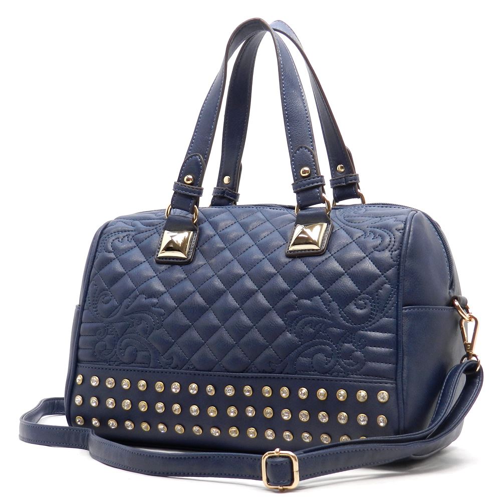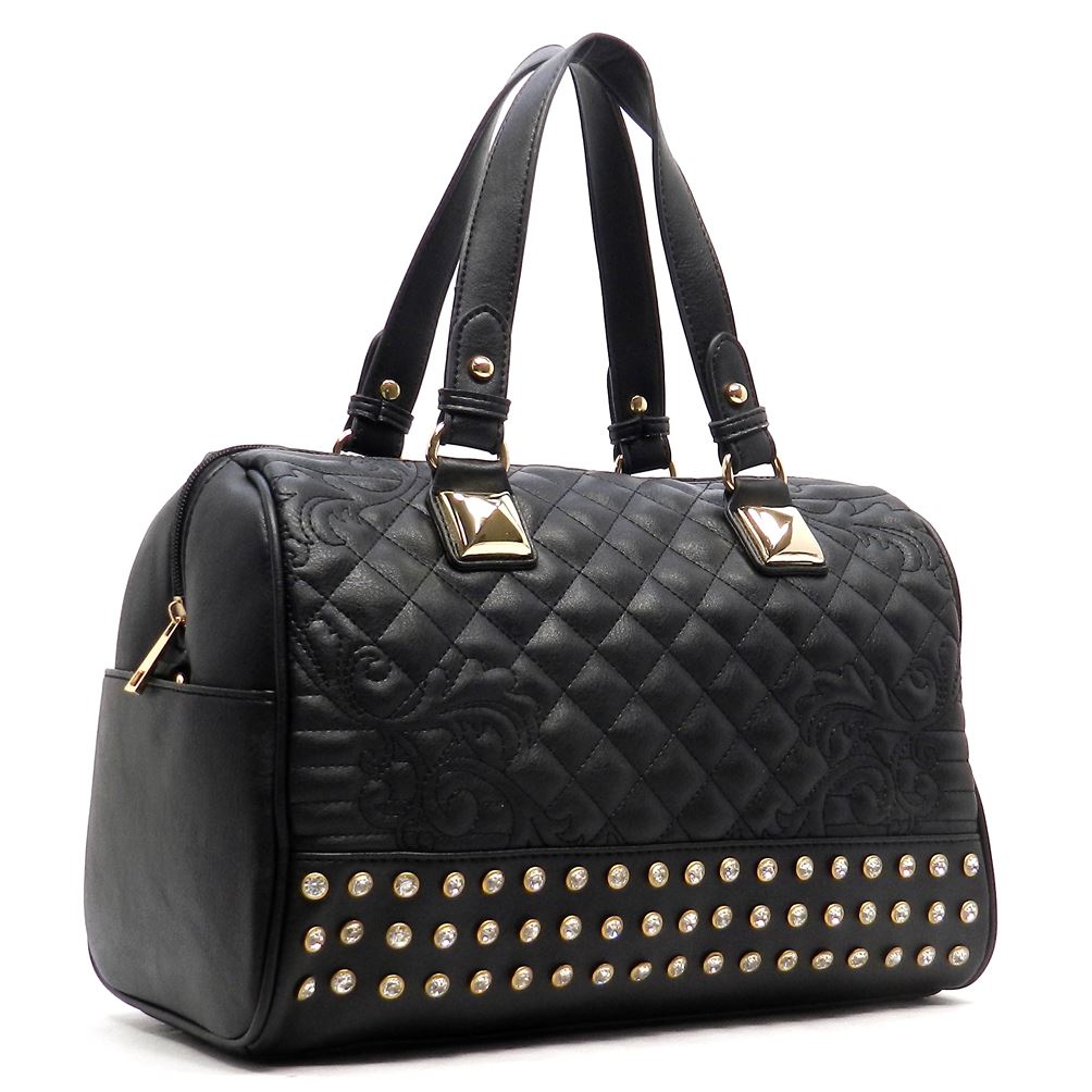Bolso de mano tipo bóxer con tachuelas y diamantes de imitación de diseñador LOEM