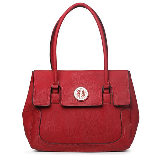 Bolso tipo cartera con medallón y diseño floral dorado inspirado en el diseñador en color burdeos y rojo