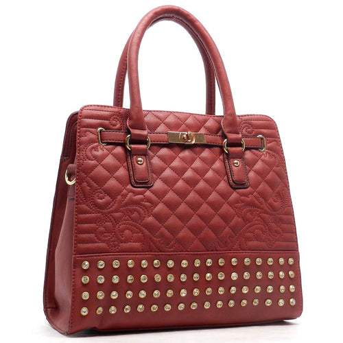 Bolso de hombro acolchado con cierre giratorio y diseño inspirado en el diseñador con tachuelas de diamantes de imitación