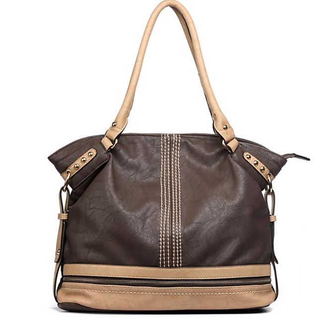 This is a Designer Color Block strap on Embossed and bold stitching on leather like PU , zipper closed with adjustable shoulder strap satchel bag , inside of bag, there is a zipper closed pockets divided the bag to be 3 rooms, in front layer, there are 2 open slip in pocket , on the back layer, there is a zipper closed pocket for convenient use