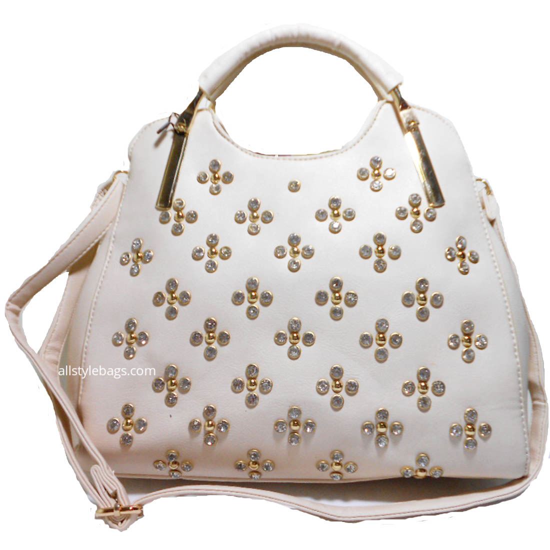 Designer LOEM Rhinestone Studded polka flora Shoulder bag handbag Tote
